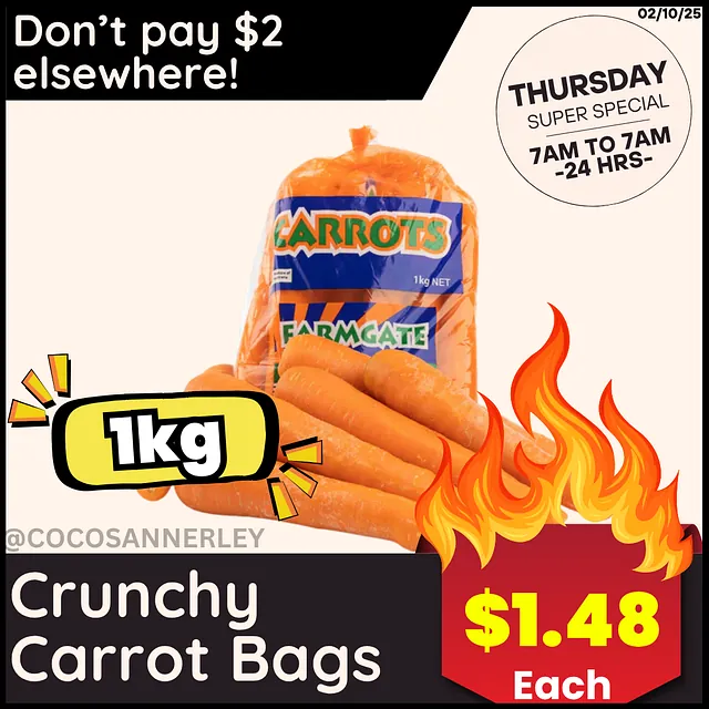 These weekly specials run from 7am Tuesday 30/09 to 5pm Monday 06/10.